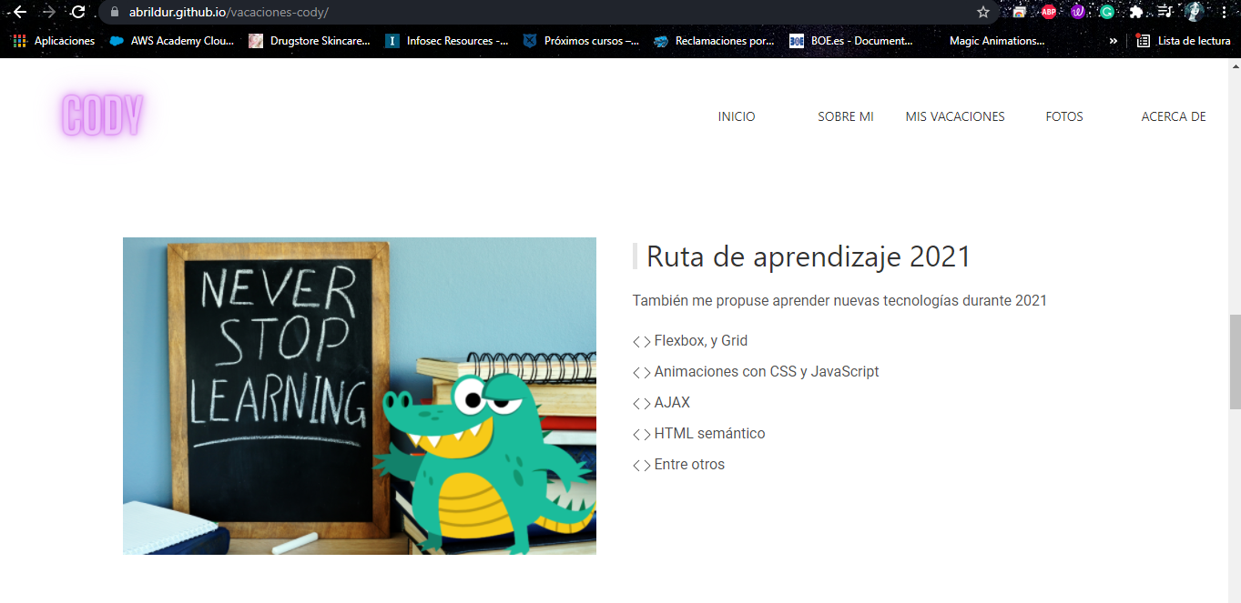 Hice esta página con Uikit, HTML y CSS. Me gusto el fondo del que puse en la página, me gusto el contraste que hice con el logo de cody y como queda con el color del fondo del inicio.