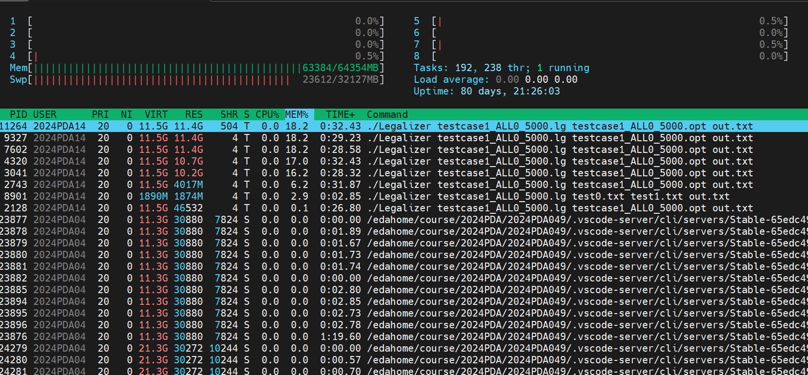 terminate called after throwing an instance of 'std::bad_alloc' what(): std::bad_alloc:::info Please try not to overuse server resources. Close the IDE window if you are not actively using it. For programs that continually allocate memory on the heap, please implement garbage collection to manage memory. We've received some queries about OS memory abortion errors. Apologies for any inconvenience, and please note that an LSF job scheduler is currently unavailable. We hope everyone can be considerate and avoid actions that could paralyze the server or continuously occupy resources. :::