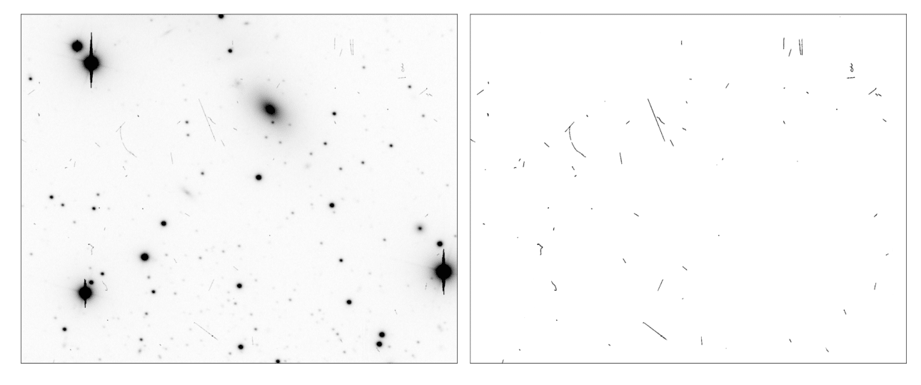 It is also easy to integrate Cosmic-CoNN CR detection into your data workflow. Let image be a two-dimensional float32 numpy array of any size: