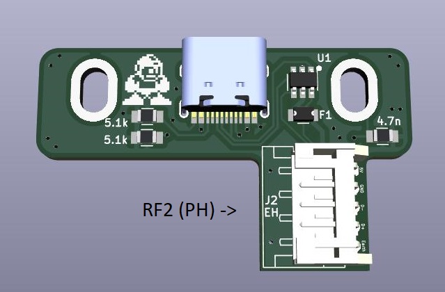 * Manufacturing files are set up for JLCPCB. * Thickness does not matter suggest standard 1.6mm * "Remove Order Number" option choose "Specify Location" (uses "JLCJLC" on silkscreen for order # position) * Assemble top side * Choose assembly file version (No connector: need to solder then yourself, RF1 or RF2 as indicated above in renders) * Manual part adjustments from KiCad Outputs (already handled in manufacturing files)| Part | Adjustment |