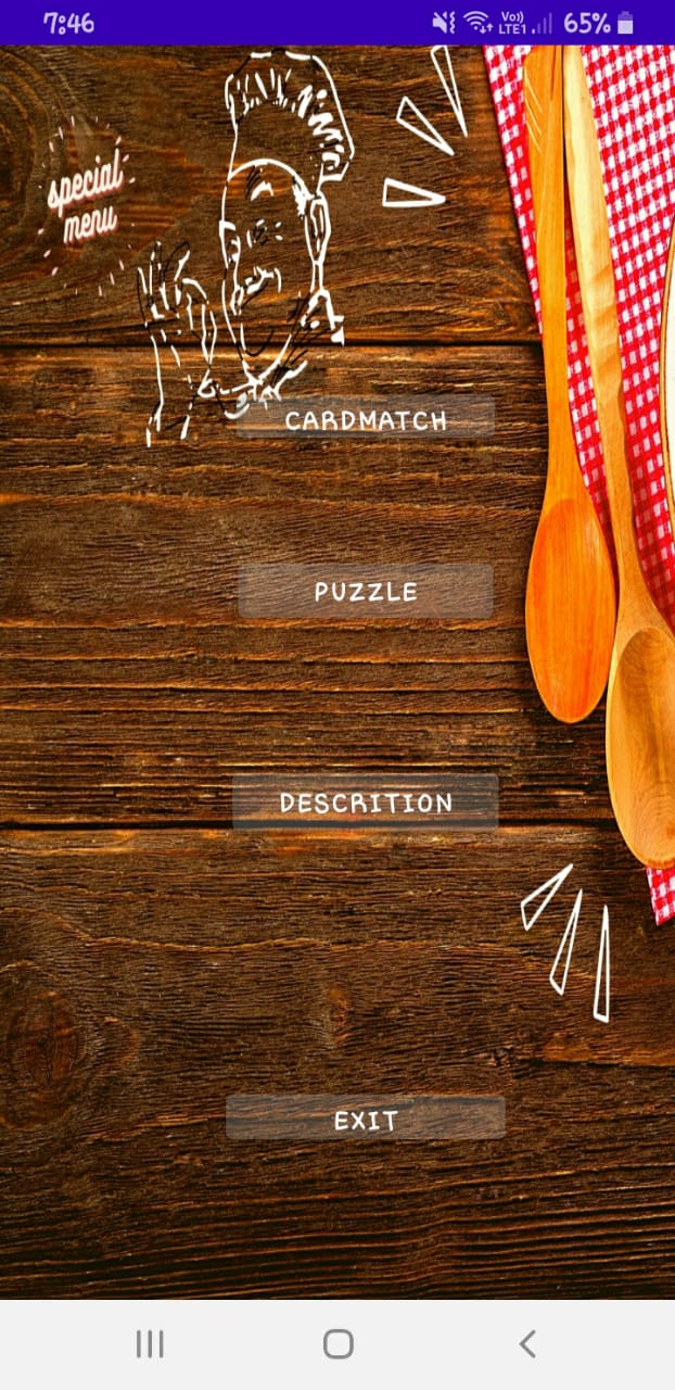 The menu pages consist of 4 options namely Picture Puzzle, Matching cards, description & exit.By clicking on Picture Puzzle, the user can clear the scrambled image.