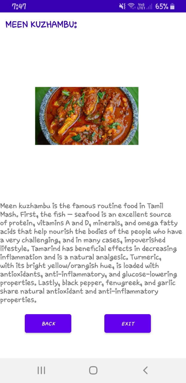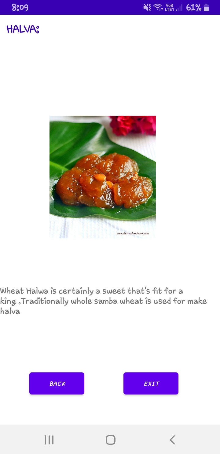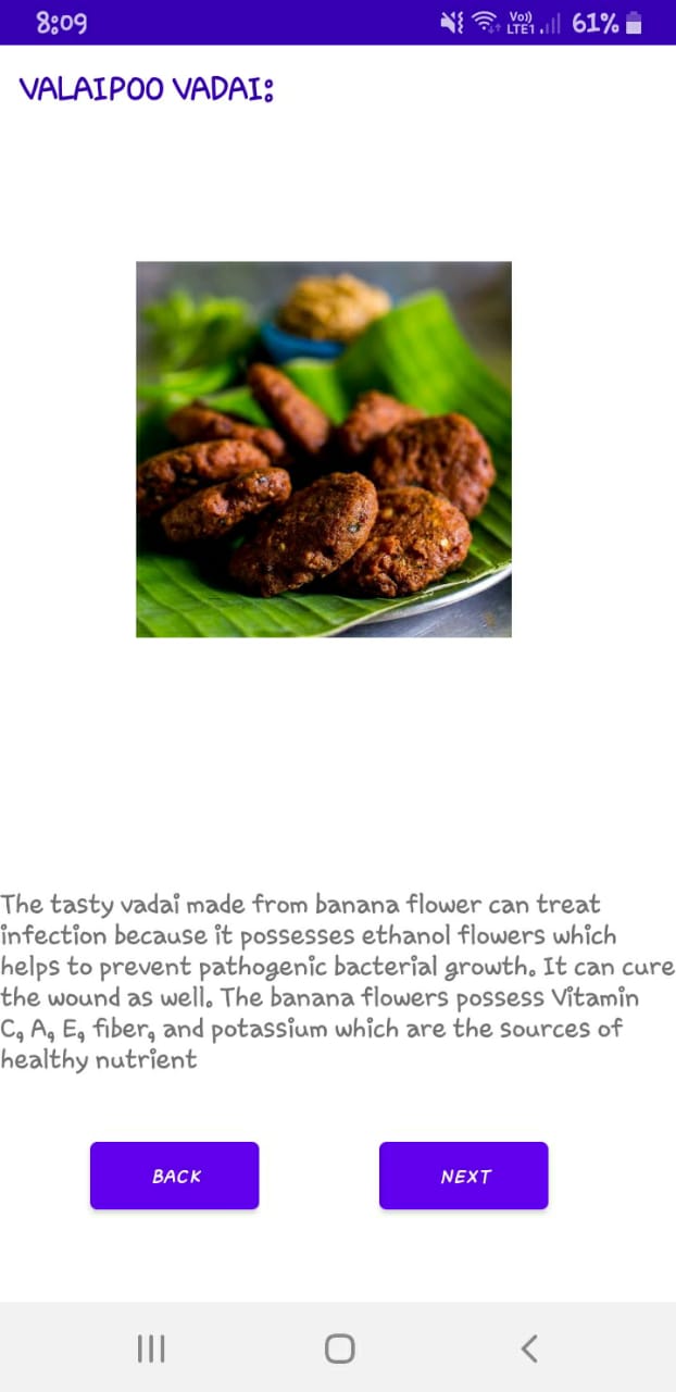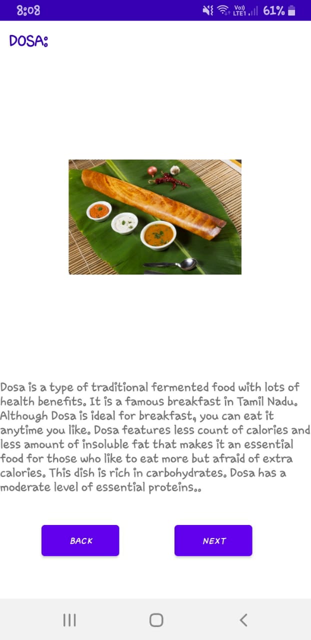By choosing the description, it provides ingredients, health benefits, importance of Indian foods. This procedure is similar for all the states in India.