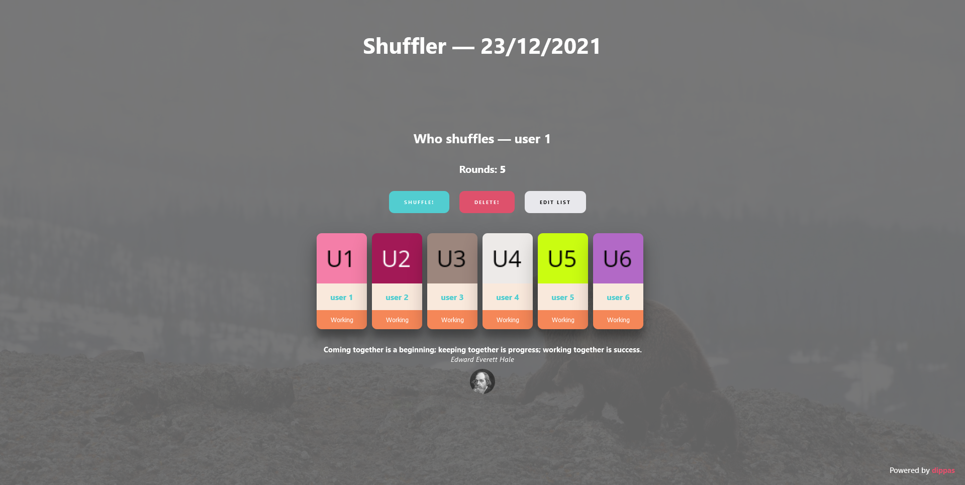 yarn devyarn buildyarn preview- Shuffle Randomly Users (with random rounds between 5 and 10)