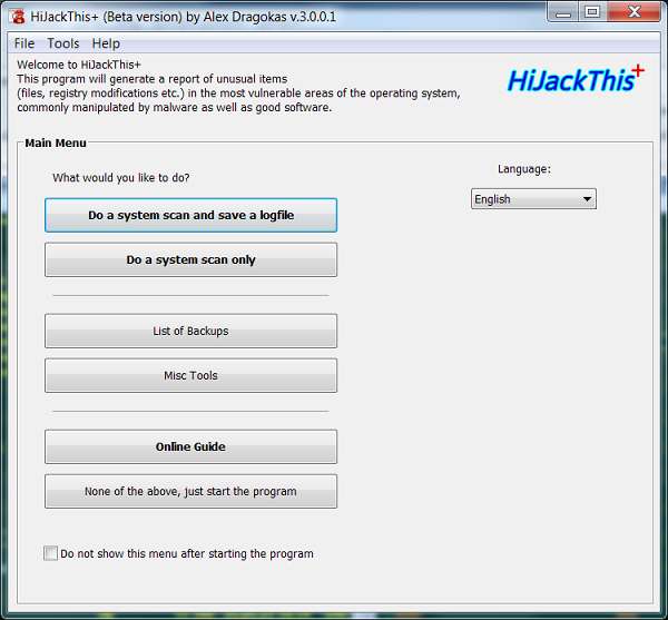IMPORTANT: HiJackThis+ does not make value-based calls on what is considered good or bad. You must exercise caution when using this tool. Avoid making changes to your computer settings without thoroughly studying the consequences of each change.