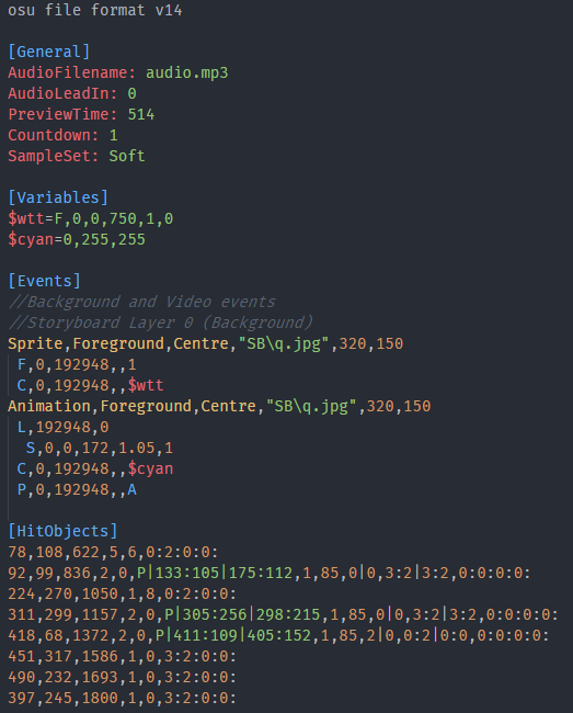 This extension provides syntax highlighting for osu! beatmap and storyboard files.