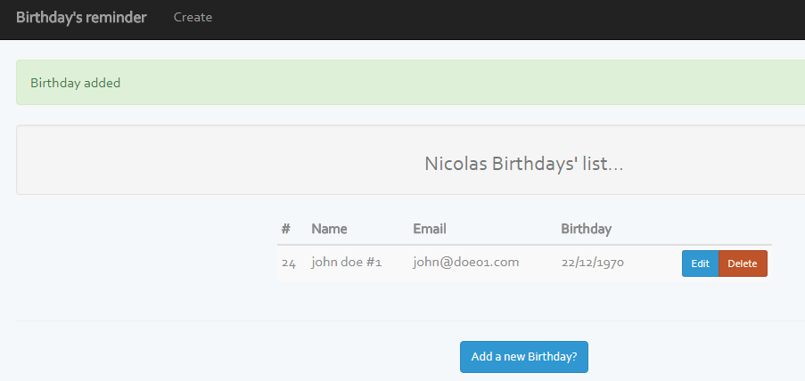 Send you an email to warn you with the next birthday to remember