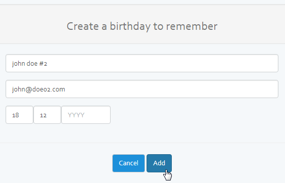 On the main menu, add a new birthday