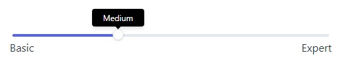 <Slider bind:value={vlevel} min={0} max={30} minLabel="Basic" maxLabel="Expert" valueLabel={skill_level[Math.round(vlevel/10)]} tooltip="hover" />