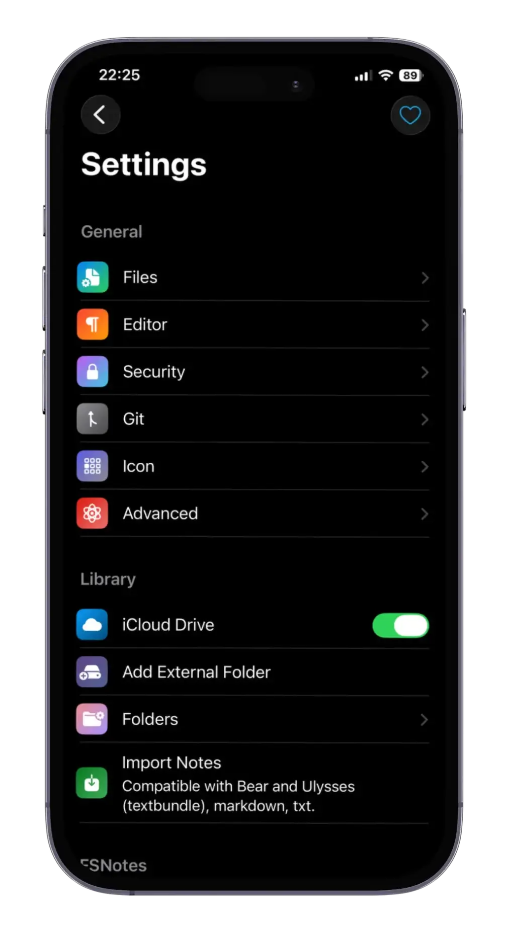 - Sync via iCloud Drive.