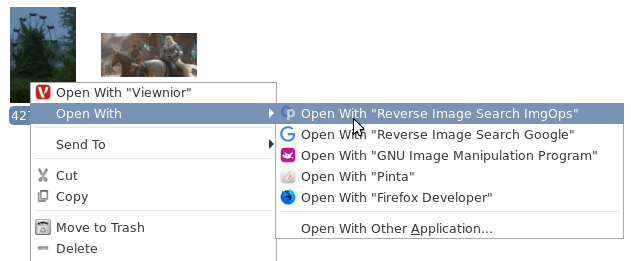 Context menu reverse image search option for linux desktops.