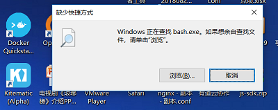 重新运行Docker Quickstart Terminal ,然后再弹出的窗口中点击“浏览”,找到Git安装目录下bin/bash.exe,选中打开