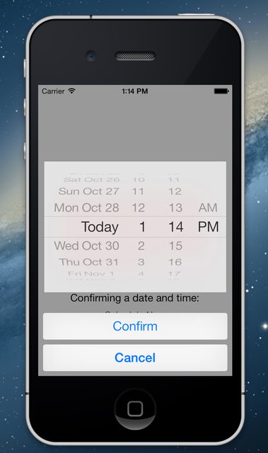 Example uses for this custom UIActionSheet would be to include more functionality to your action sheet than just providing a message with "OK" and "Cancel" buttons: adding a UIDatePicker, adding other selectors, or adding switches are just the beginning of what you could do with this new action sheet.