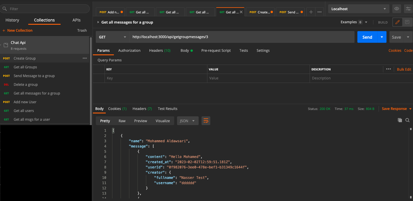 - Get - /api/getgroupmessages/:id :: to get all messges for a specific group By ID