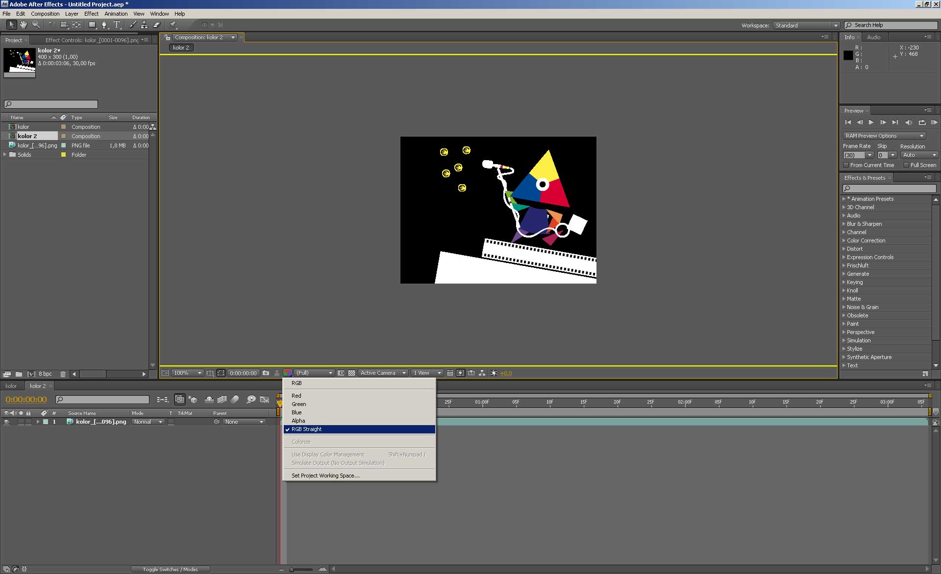 Note the jagged edges in the color channel(s) due to un-premultiplying: