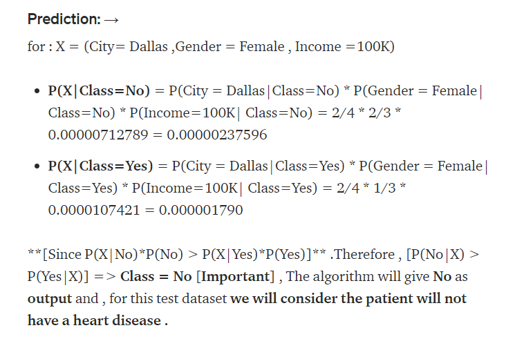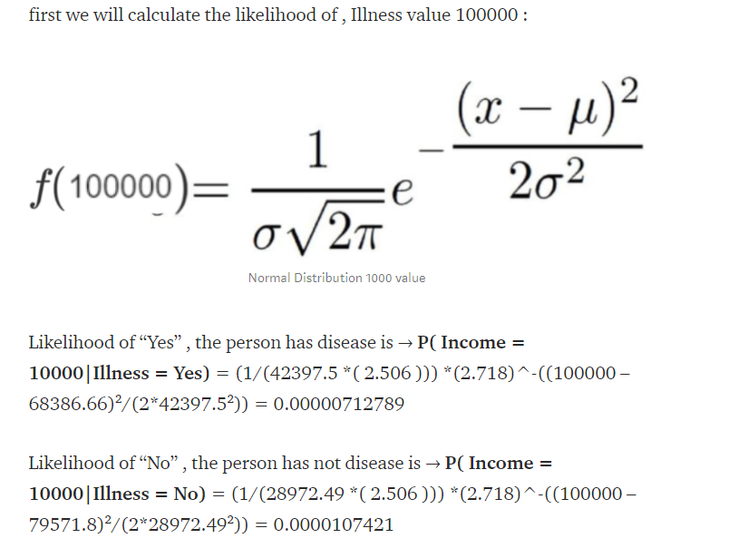 Also notice, we remove the denominator because it is constant for all the class, so it doesn't matter, because all the numerator value would be relatively hold true for most of the expect. For instance: