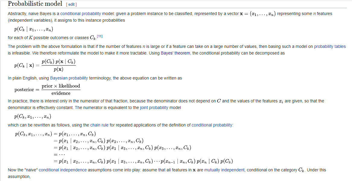 To make naïve Bayes work, we make current feature independent to other features, for instance