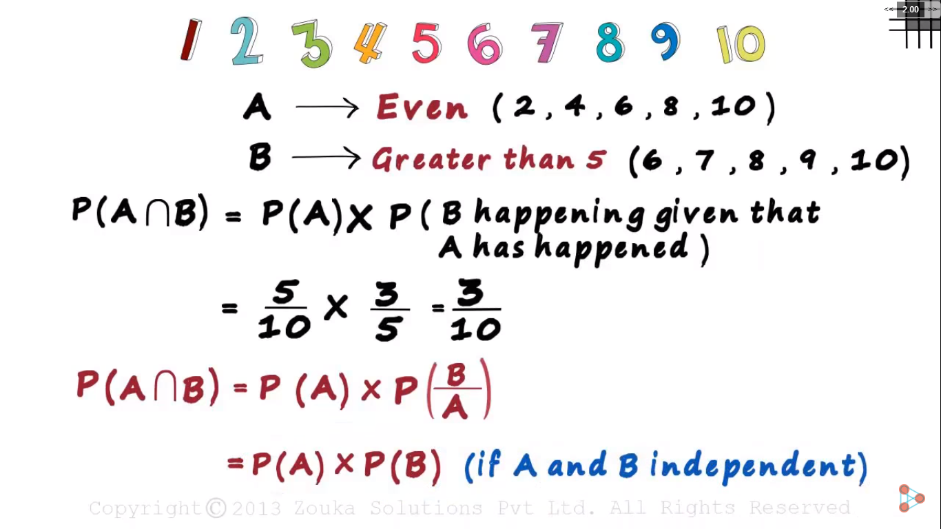 For Independent events Probability of P(A and B) = P(A) * P(B)