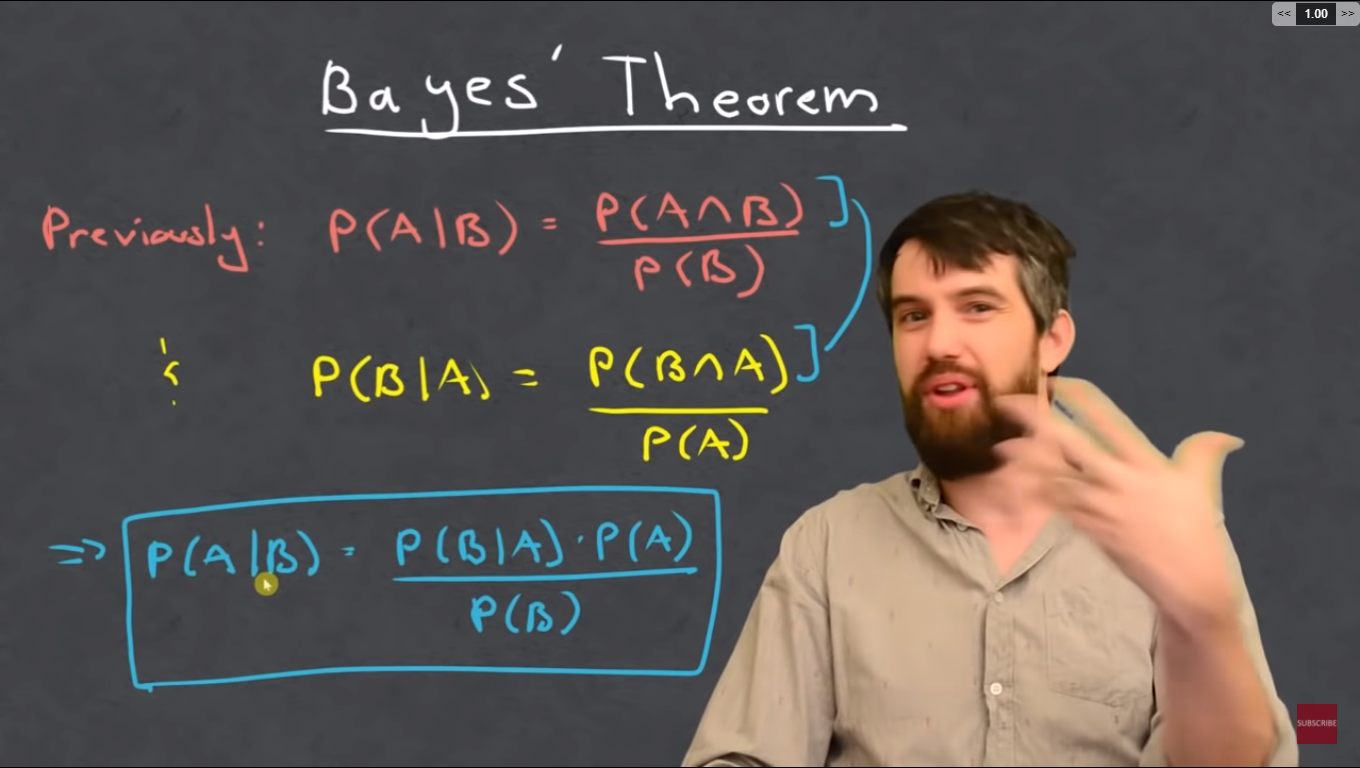 Bayes theorem(a way of finding conditional probability)