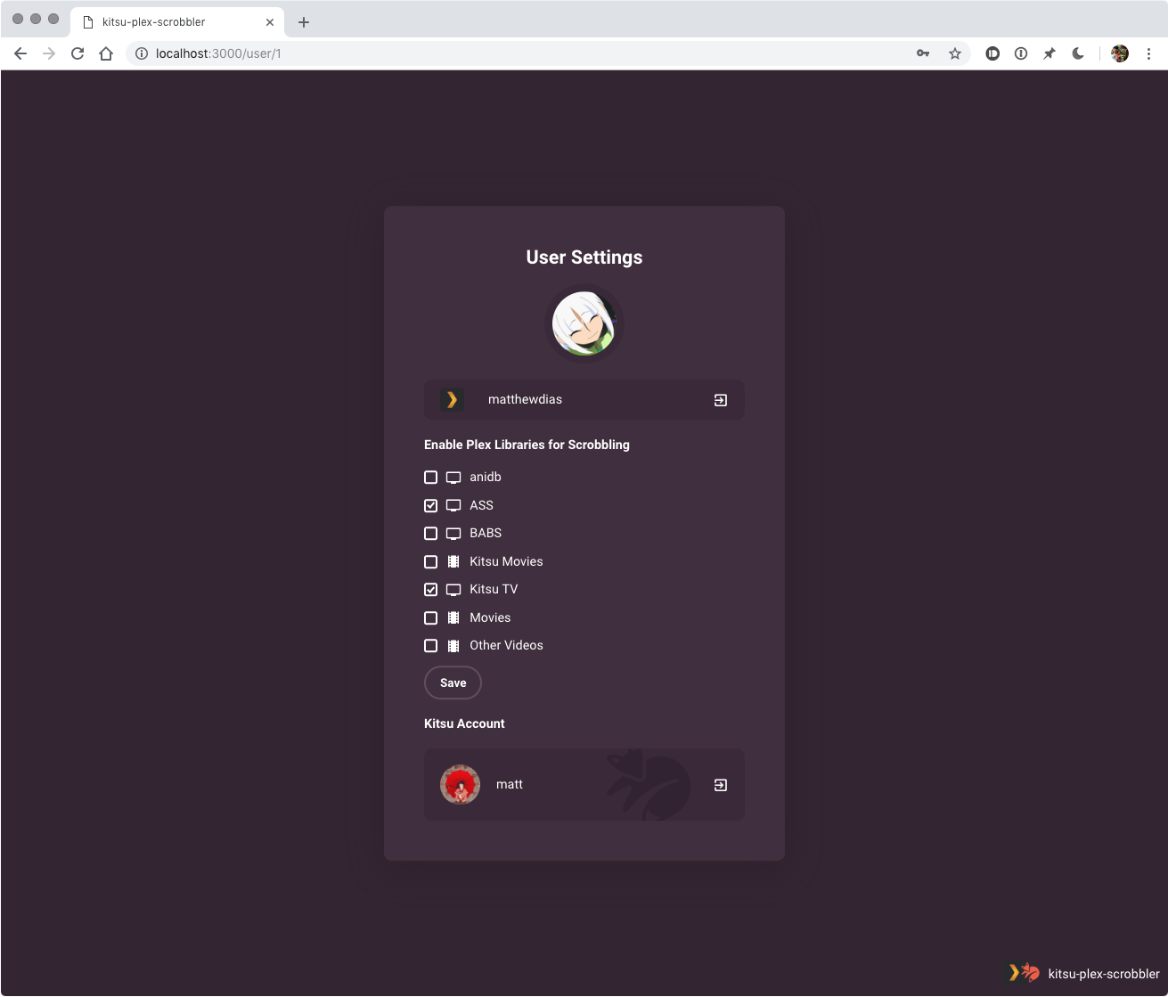 - Choose which libraries you want to scrobble for your Plex account