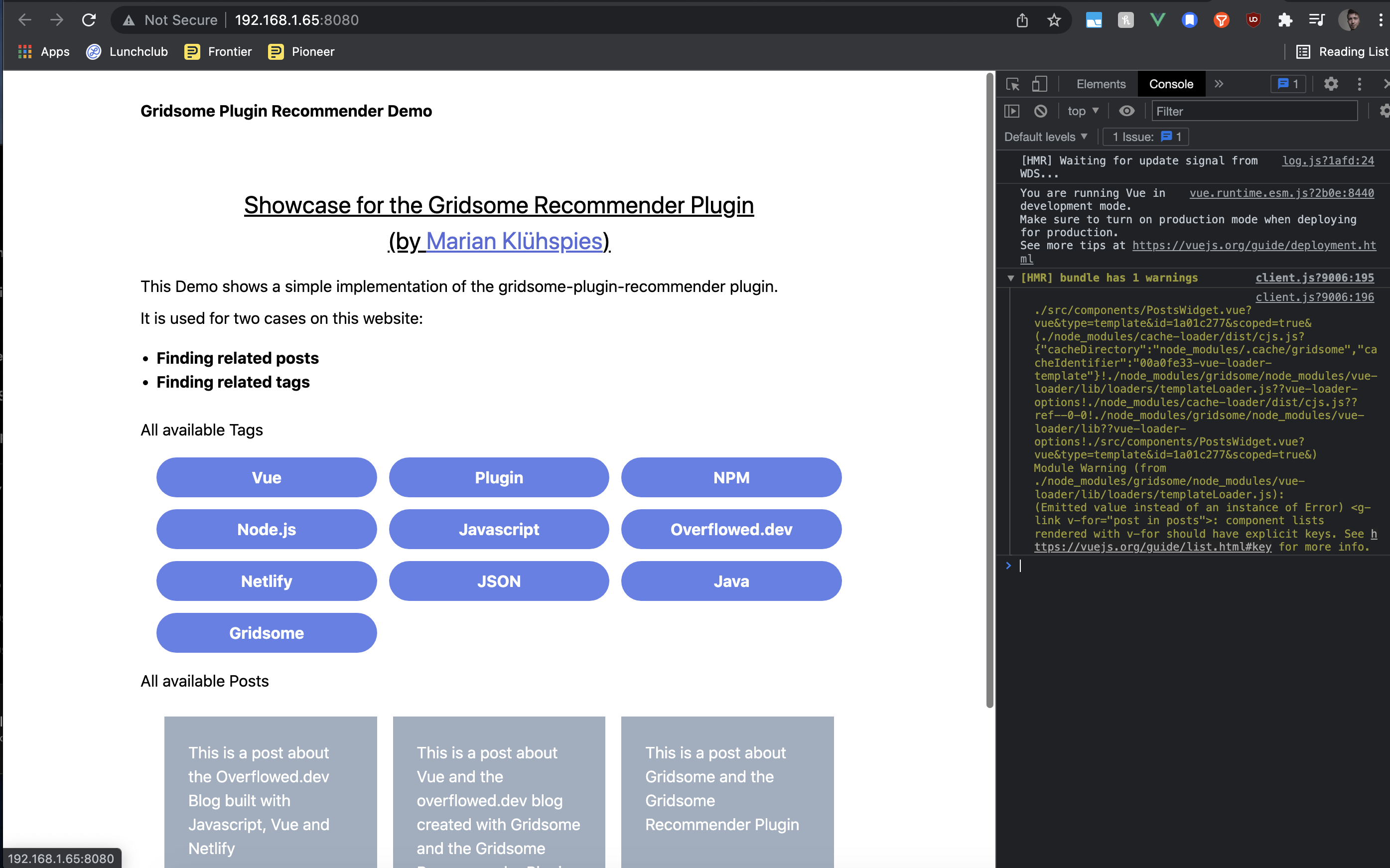Do you have the error too that I'm getting or have you managed to get your change working with vue-remark? I've checked out your branch and tried to get it working and I wanted to add another example usage to the project. The code I've posted here is not yet committed, but I think it would make sense in case the change is working. |
