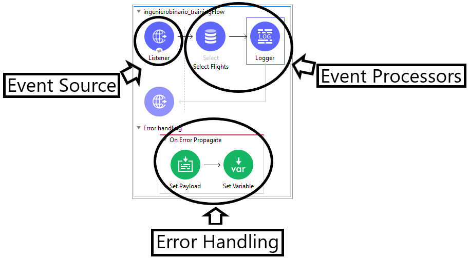 Mule Applications accept and process events through a series of event processors plugged together in a flow