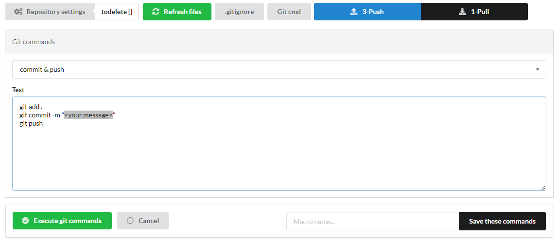 Add default git commands in git part