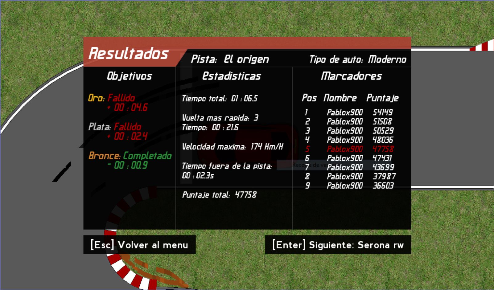 Adicionalmente tras cada vuelta el puntaje obtenido es subido a una plataforma online de puntajes, permitiendo así una mayor competitividad con el resto de los jugadores alrededor del mundo: