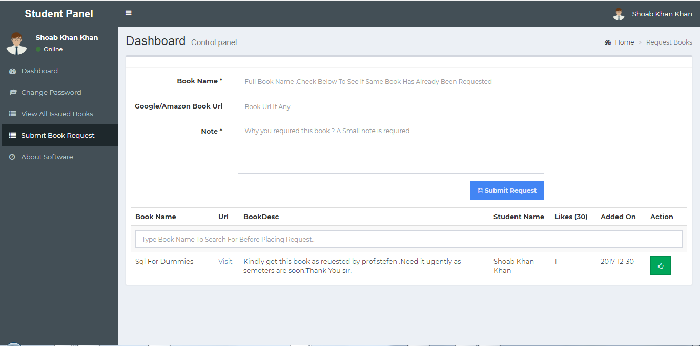 He creates a new request for the book and provide details.Other student can like his request if certain nos of people like this request then librarian can may be accept the request.