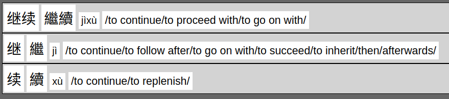 - show potential words formed by later parts of word and following words. ex: the phrase "笔试和面试" finds words for 笔试, 和面, and 试 (even though it probably should be 笔试, 和, and 面试) so the program should also show that 面试 was a possible word