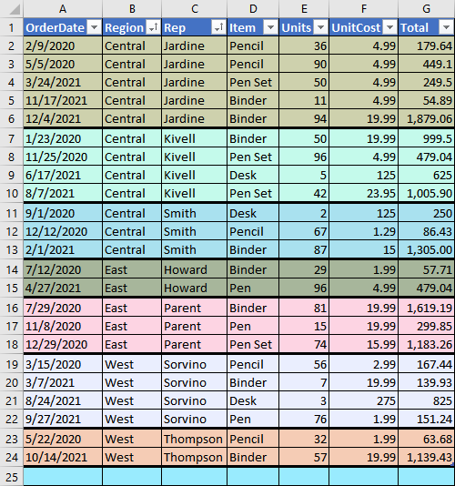 This script colorizes and thickens borders of Excel rows based on one or more columns.