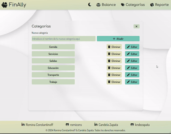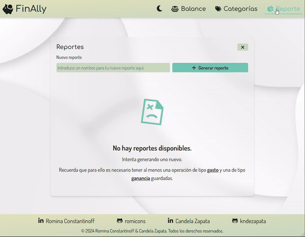 Esta web app se compone de tres secciones principales: Balance, Categorías y Reportes.