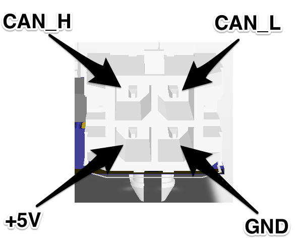 The connectors carry the CAN bus, 5V power and ground. Note that 5V power must be provided on at least one connector in order for the board to work.