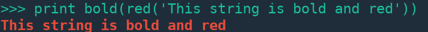 print(Fore.RED + 'This string is red')- Termcolor