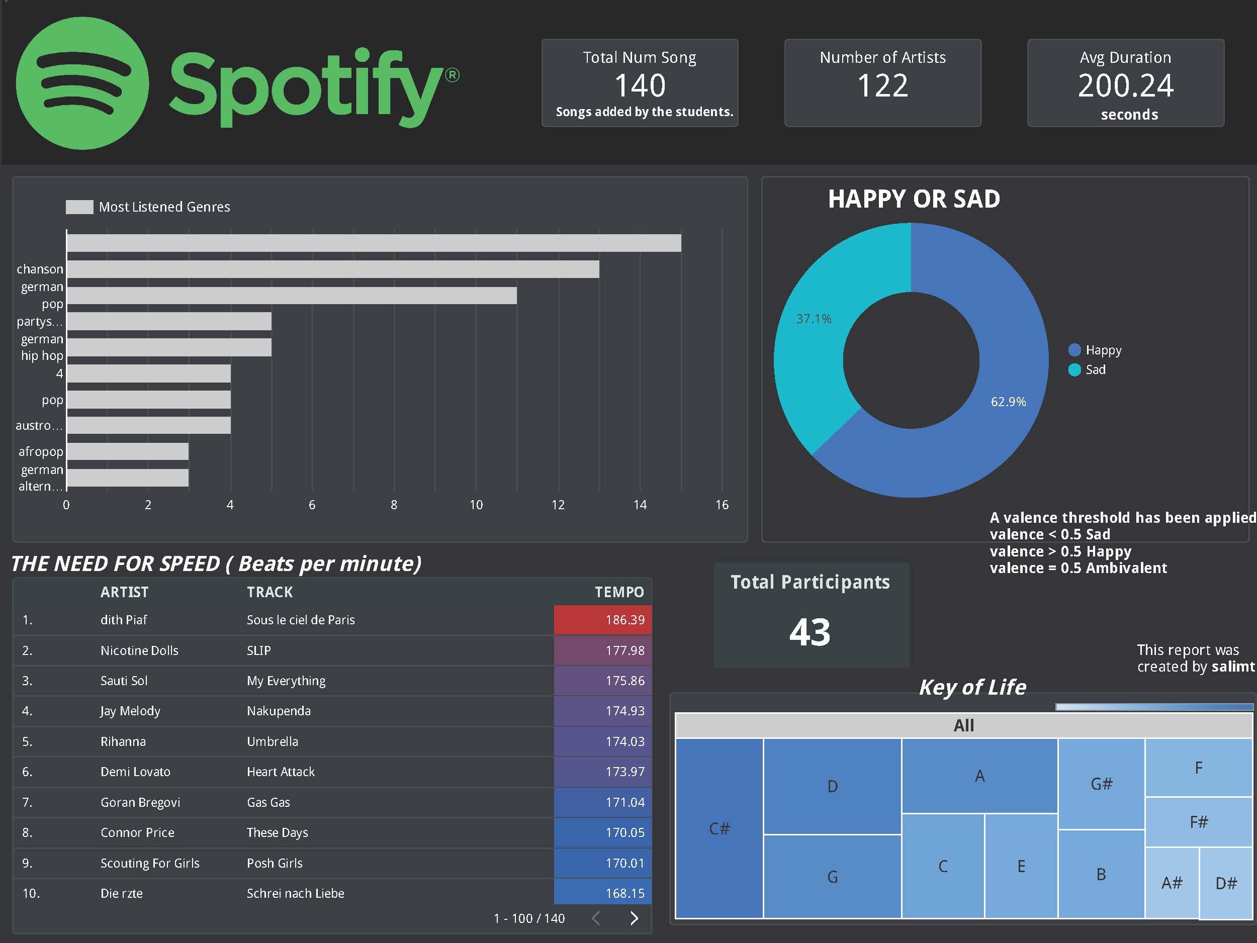 A data pipeline to extract Spotify data from a playlist that is created by students.