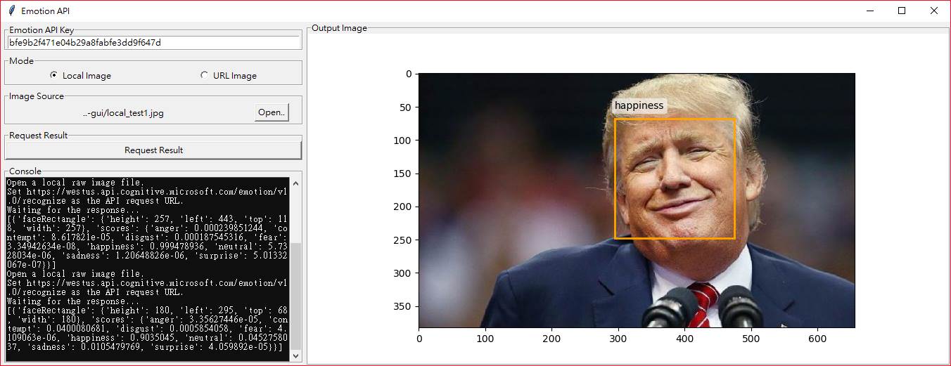 python main_application.py. - Input Emotion API Key in the first entry of the GUI application.