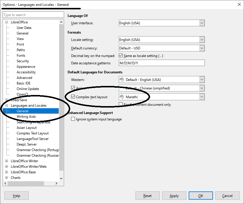 Tools - Options - Languages and Locales - General - Complex Text layout