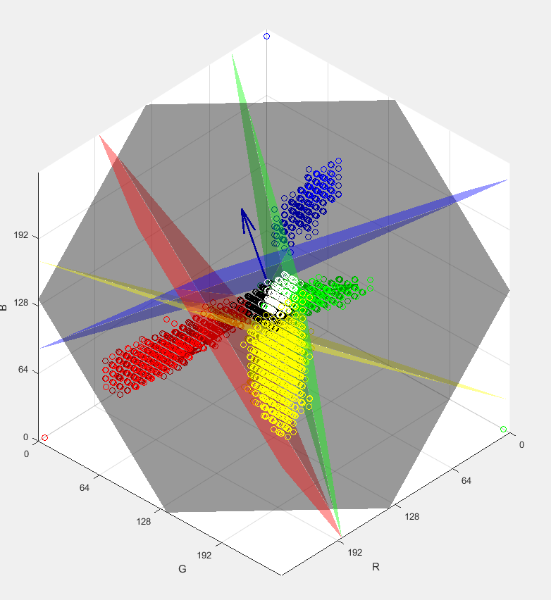 Pixel locations are mapped to world space by finding the camera matrix, assuming no lens distortion, and that a random guy on the internet measured the FOV correctly. Using this matrix, a pixel can be projected onto any plane in robot space - we mostly project onto the plane z = 1 inch.