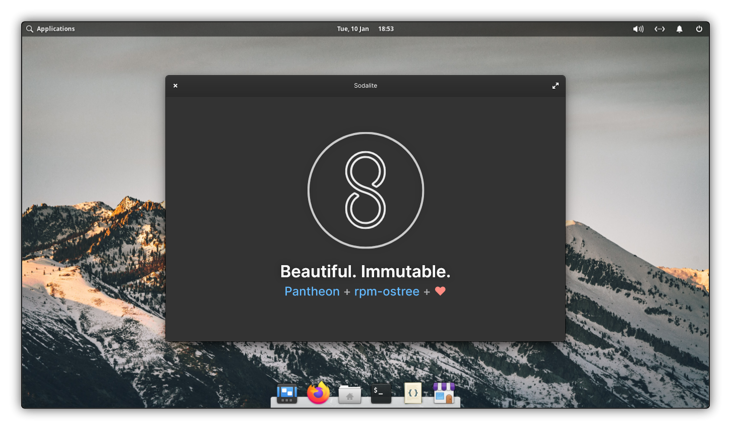 Sodalite is an immutable desktop OS built with rpm-ostree and on-top of Fedora β similar to Fedora Silverblue β making use of the Pantheon desktop, sticking closely to the ethos and workflow perpetrated by elementary.