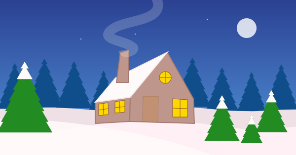 This script draws a scene using the package Luxor.jl. I have drawn a snowy landscape that looks simple at first, but uses complex features of Luxor.jl to add attention to detail.