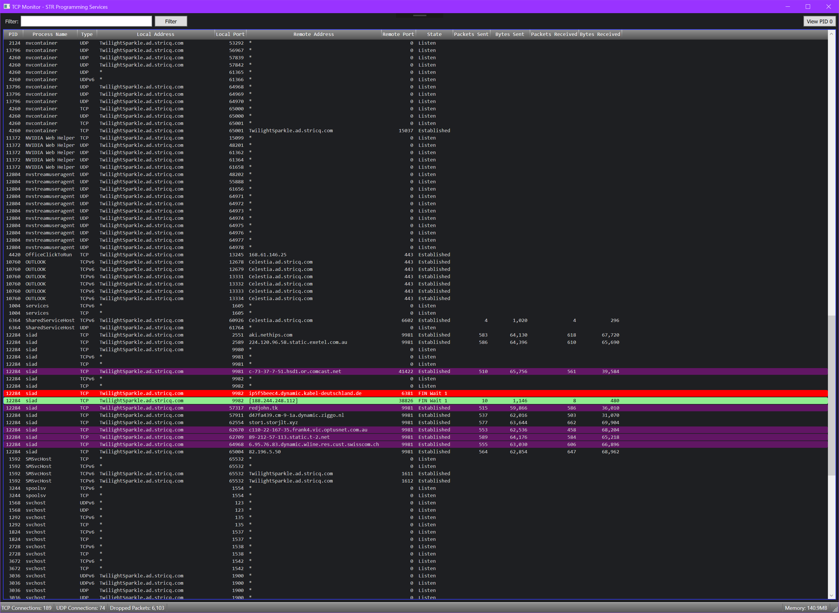 Works like the SysInternals tool TCPView with the added feature of filtering the list of connections.