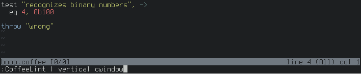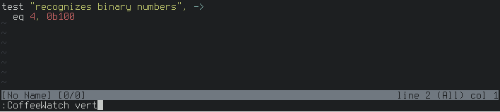 After a source buffer is watched, leaving insert mode or saving the file fires off a recompile of the CoffeeScript: