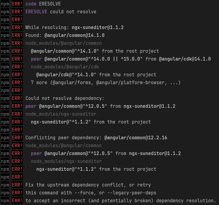 run npm i ngx-suneditor'