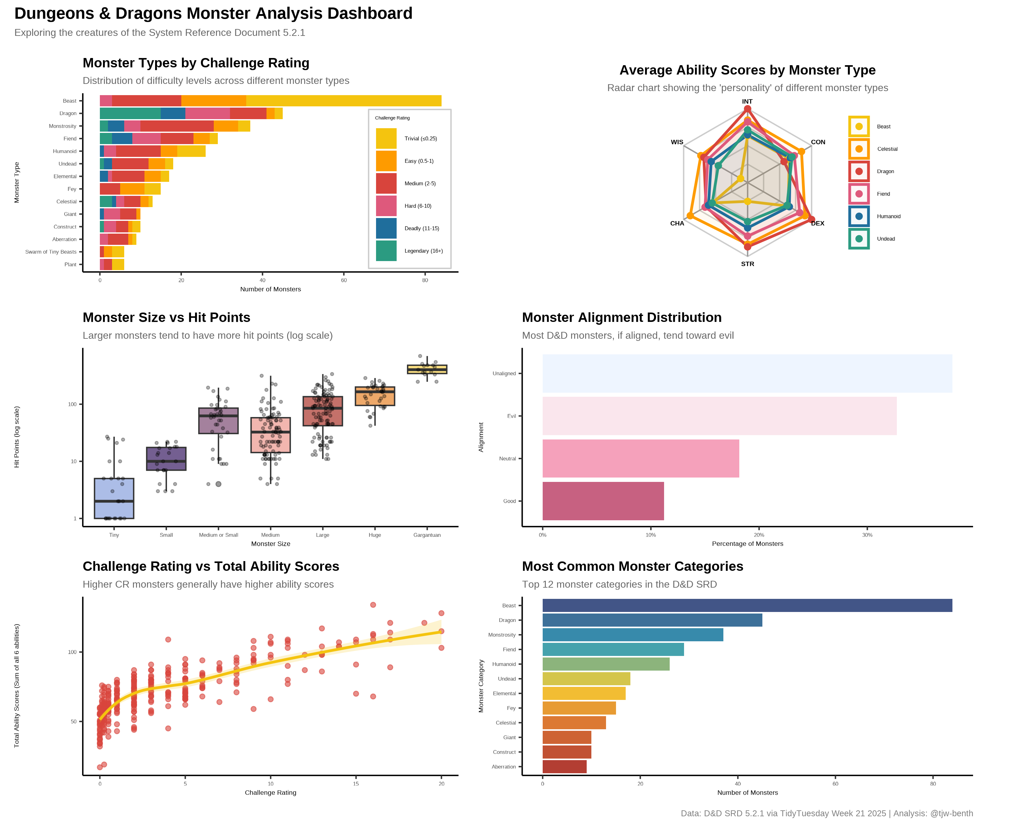 Analyzed Dungeons and Dragons Monsters (2024) data using Tidyverse and ggplot2.