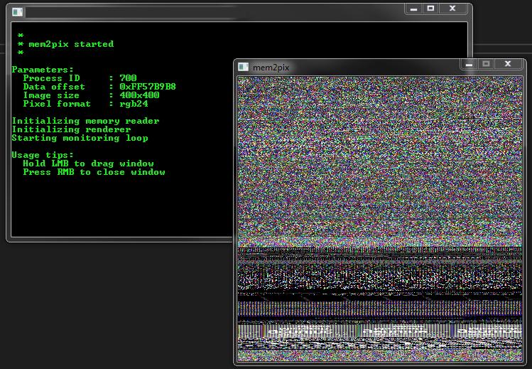 Program for visualizing arbitrary part of remote process memory in real-time.