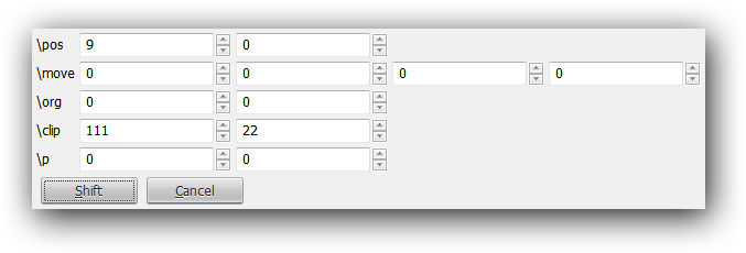 Shifts position tags in selected lines (\pos,\move,\org,\clip,\p).