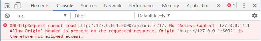 XMLHttpRequest cannot load http://127.0.0.1:8000/api/music/1/. No 'Access-Control-Allow-Origin' header is present on the requested resource. Origin 'http://127.0.0.1:8002' is therefore not allowed access.