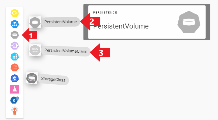 - 연결 점선이 나타나면 PV(PersistentVolume) 객체를 클릭합니다.