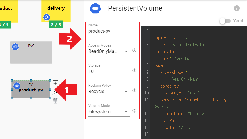 - PersistentVolume, PersistentVolumeClaim 객체를 더블클릭하여 프로퍼티 편집창을 호출합니다.