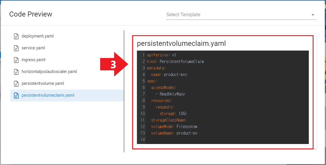 - PVC(PersistentVolumeClaim) 객체를 클릭하여 ↗ 화살표 버튼을 클릭합니다.