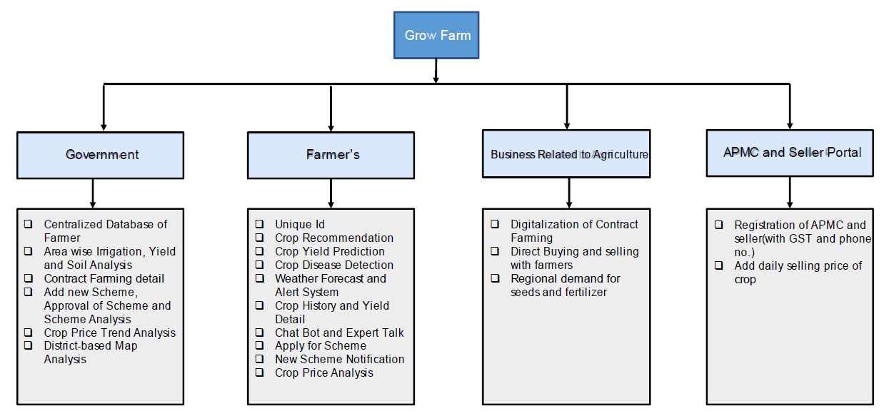 The proposed portal aims to provide a comprehensive and integrated platform for farmers, offering a range of features and services to enhance their agricultural practices. It addresses the challenges faced by farmers who need to navigate multiple platforms for information and services related to schemes, land details, APMC markets, and smart farming techniques. By providing a unique farmer ID and centralizing information, the portal streamlines access to crucial data such as scheme notifications, land details, APMC history, and facilitates processes like applying for loans and insurance.